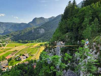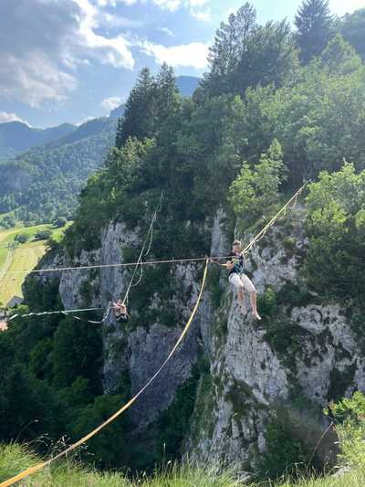 Čeprav sem stala na trdnih tleh, me je vprašanje na spletni strani društva SlackAlien – "Si upaš pogledati strahu v oči?" – napolnilo z adrenalinom in metuljčki v trebuhu. "Tam gor v zraku, sredi ničesar, pa samo na enem trakcu?", se vprašam sama pri sebi.